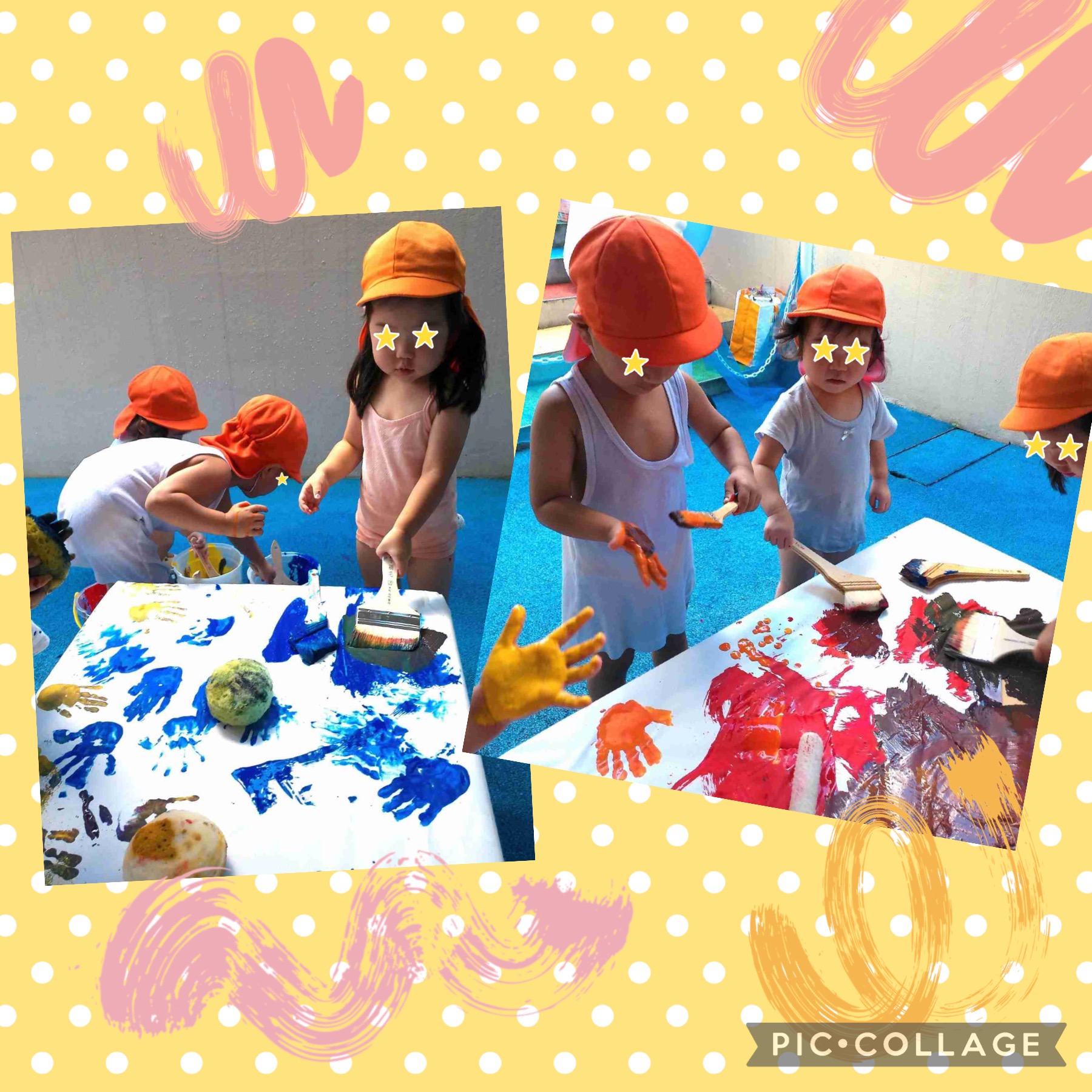 手も体も肌着も絵の具をつけて楽しそうでした♡♡