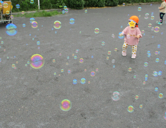 公園ではみんなでサンサン体操を踊ったり、シャボン玉で遊んだりしました。